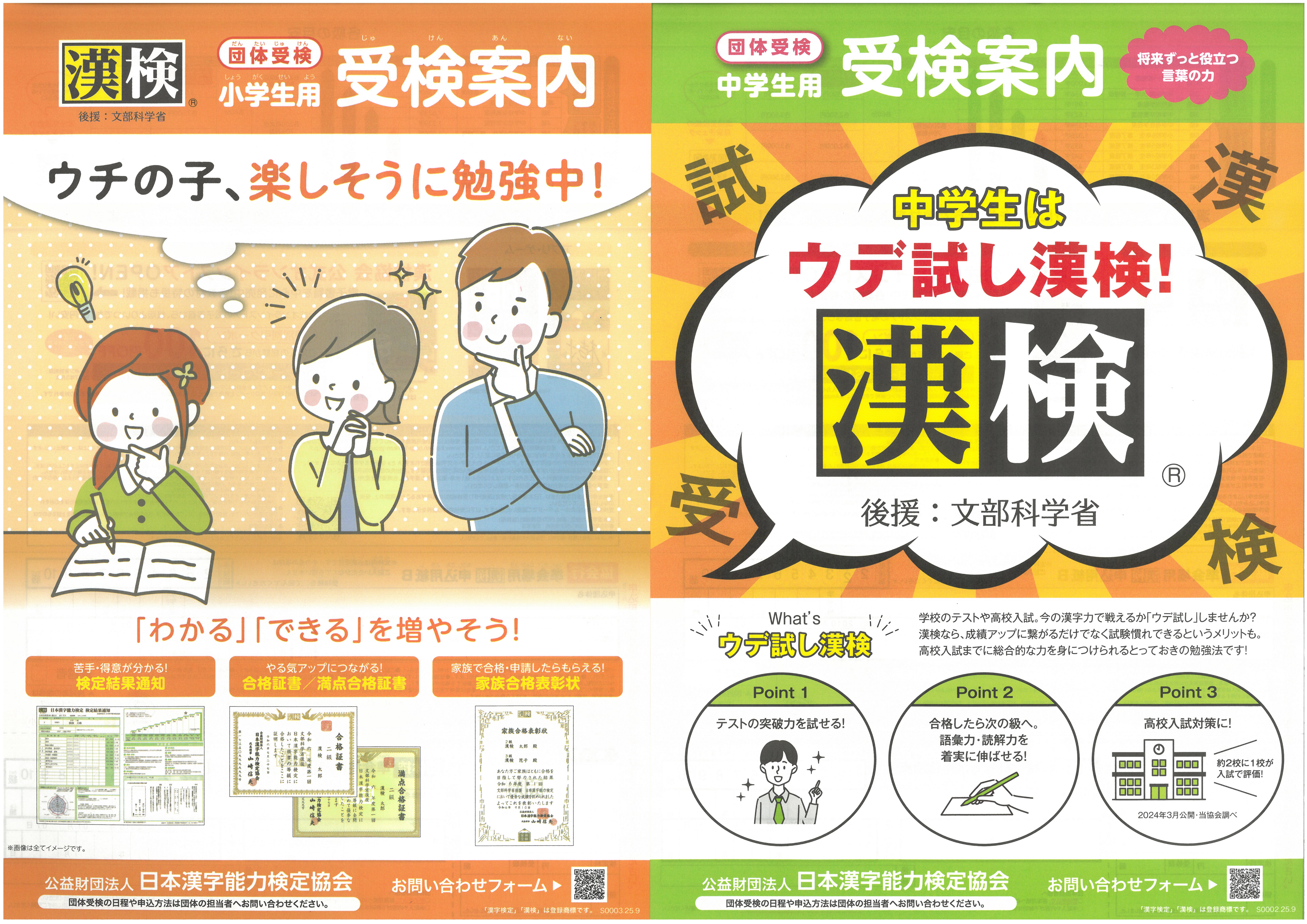 なお、今回の漢字検定は、在籍生およびそのご家族様のみ受験可能です。ご了承ください。
